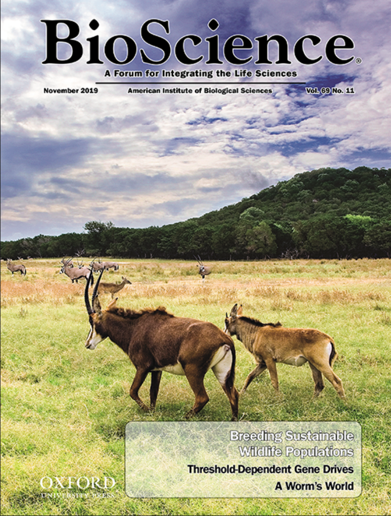C2S2’s Source Population Alliance was featured as the October 2019 cover story of BioScience. This article entitled “Breeding Centers, Private Ranches, and Genomics for Creating Sustainable Wildlife Populations,” was written by C2S2 founder and former Senior Scientist Emeritus at SCBI, Dr. David E. Wildt. It reflects the contributions of C2S2 Conservation Centers African Lion Safari, Austin Savanna, Fossil Rim Wildlife Center, Smithsonian Conservation Biology Institute (SCBI), White Oak Conservation, and The Wilds.